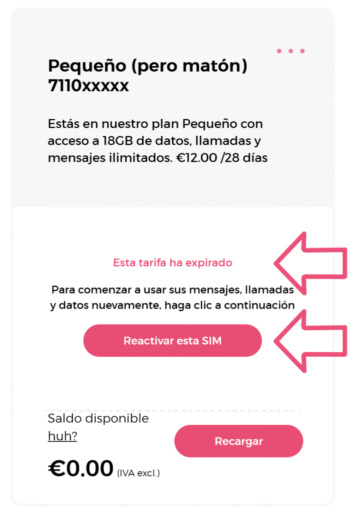 Haz clic en ‘Reactivar número’, y luego confirma que quieres poner de nuevo en marcha tu tarifa. El pago se realizará automáticamente con la tarjeta de crédito o débito que hayas registrado en tu cuenta. Espera uno o dos minutos y tu tarifa se reiniciará a partir de ese día.